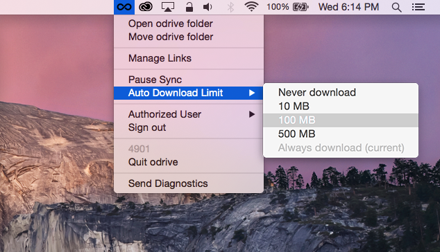 2. Select the minimum size file you prefer to have automatically downloaded each time you expand a folder. In this example, all files 100MB and under will automatically in any folder you navigate into.